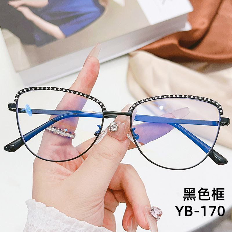 Le nouveau miroir plat en métal anti-lumière bleue de célébrité d'Internet à pois en diamant œil de chat peut être associé à des lunettes amincissantes à grande monture unie pour myopie