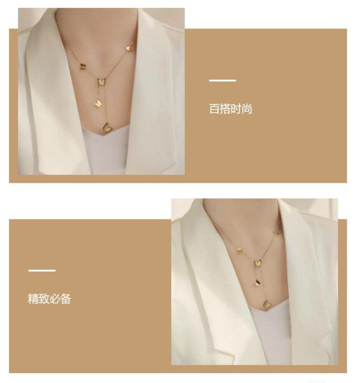 Collier à cinq papillons en or 18 carats pour femmes, nouveau style, ne se décolore pas, tendance, célébrité sur Internet, collier design de style froid, luxe léger