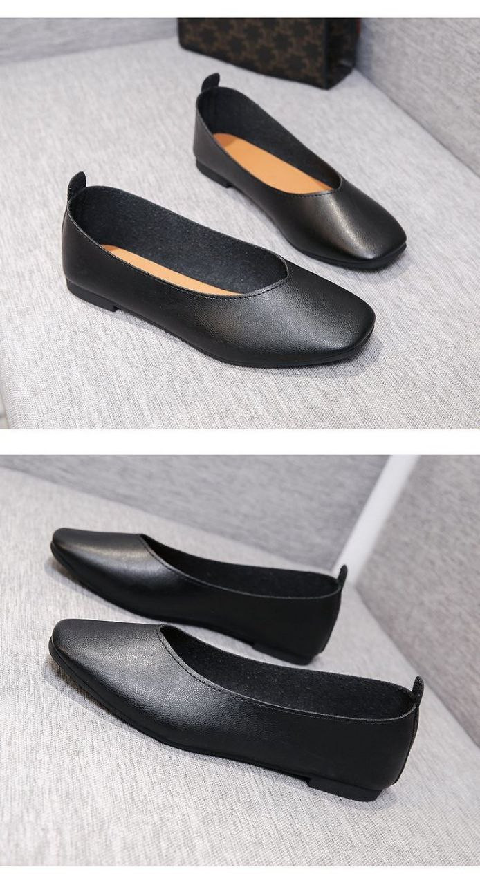 Chaussures simples pour femmes, nouveau style chaussures en cuir souple chaussures plates rétro pour femmes bout carré à bouche peu profonde