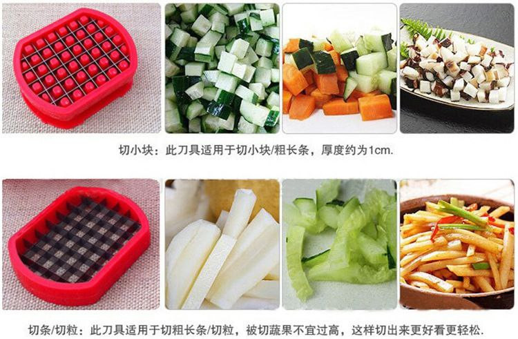 Coupe-pommes de terre domestique, radis aux fruits de cuisine, concombre, frites et coupe-pommes de terre