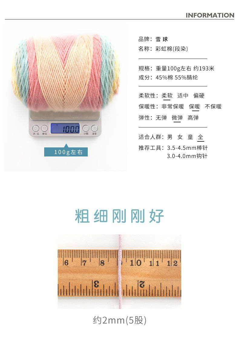 Laine 5 brins arc-en-ciel coton tricoté à la main poupée en laine oreiller couverture lait coton laine 100g