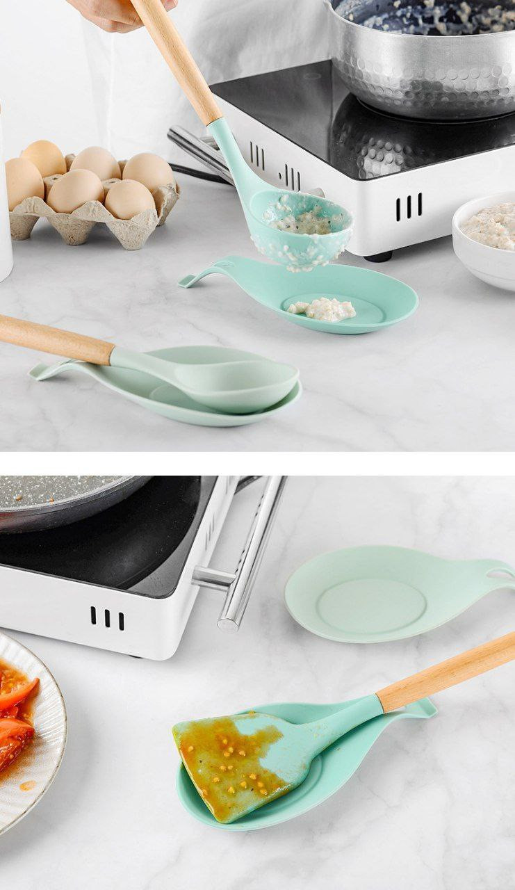 Porte-ustensiles de cuisine en silicone, tapis de cuillère, tapis de cuillère, tapis de rangement, support de plat à saveur de silicone résistant aux hautes températures, plat d'assaisonnement et tapis de cuillère