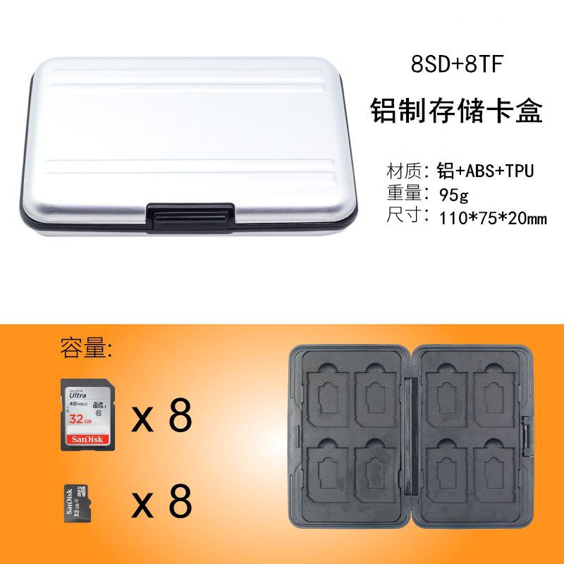 Boîtier de protection de carte SD, 8TF + boîte de carte 8SD boîte de carte mémoire en aluminium de stockage de carte mémoire,
