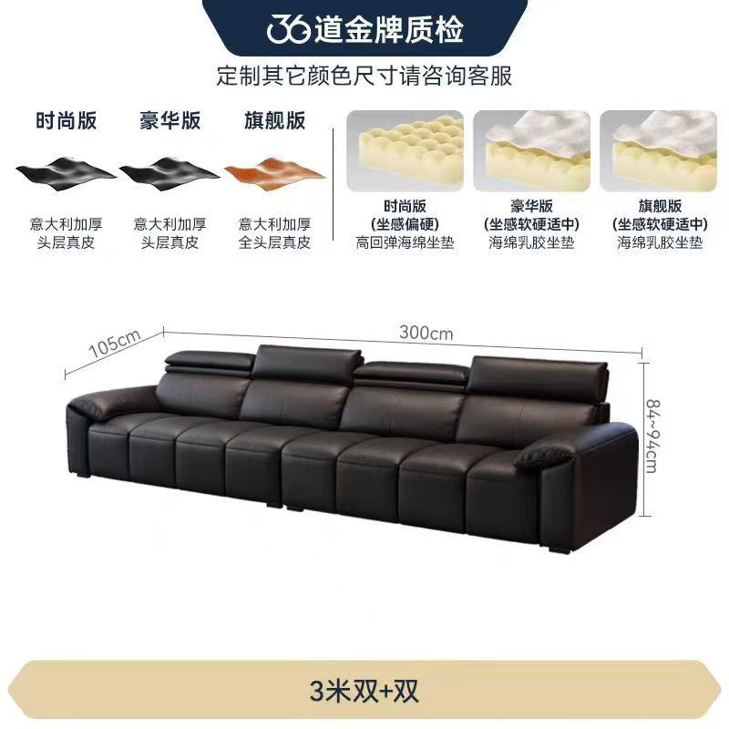marque Fasati - Canapé italien minimaliste en cuir à oreilles d'éléphant à rangée droite, tissu en cuir importé d'Italie avec texture de litchi clair et toucher peau de vache, cadre en bois de pin avec image de marque + ressort serpent en acier inoxydable. sac de siège Les lignes de touches du piano sont en latex pur lavé à l'eau + éponge à haut rebond UTTP, la couverture arrière est en éponge à haut rebond, l'appui-tête est réglable de manière multifonctionnelle, la sensation d'assise est Q-resilient, la marque le logo est attaché et la fermeture éclair est ouverte.