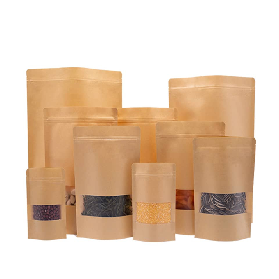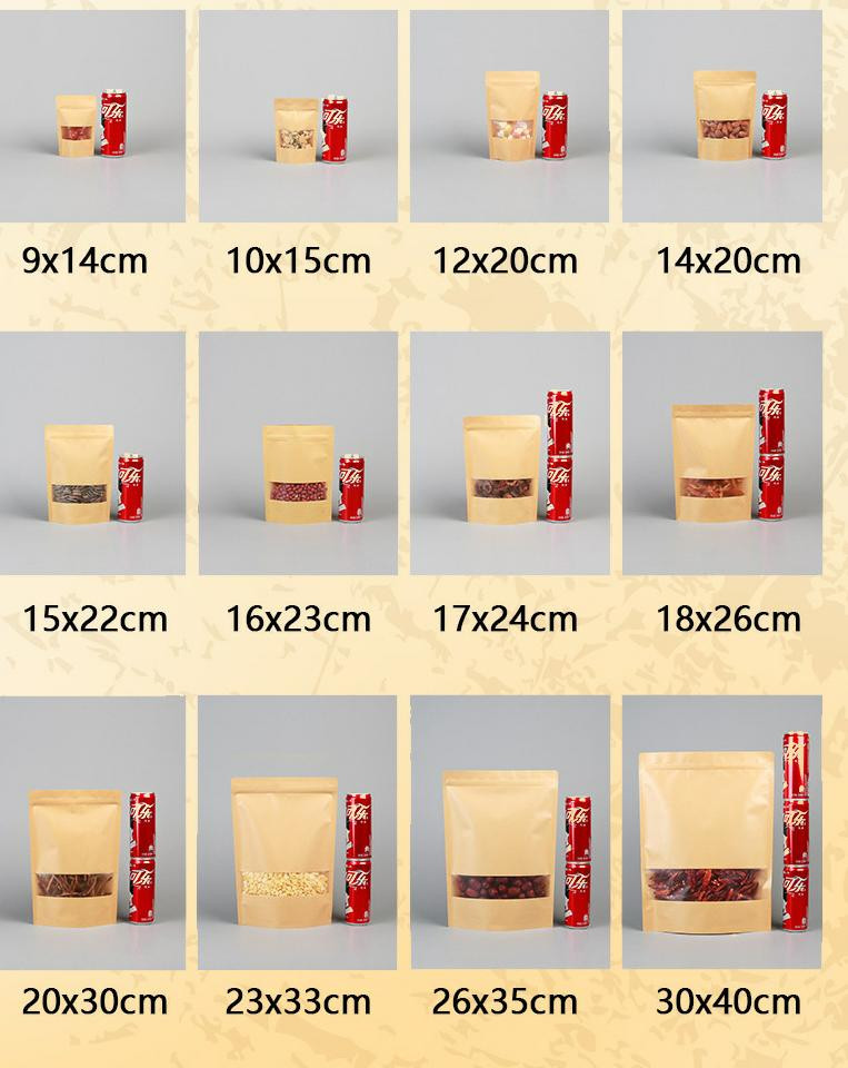 Fenêtre ouverte Sac en papier kraft fabricant en gros de sacs auto-exceptionnels Sac d'emballage alimentaire de nourriture séchée sac auto-sécurisé