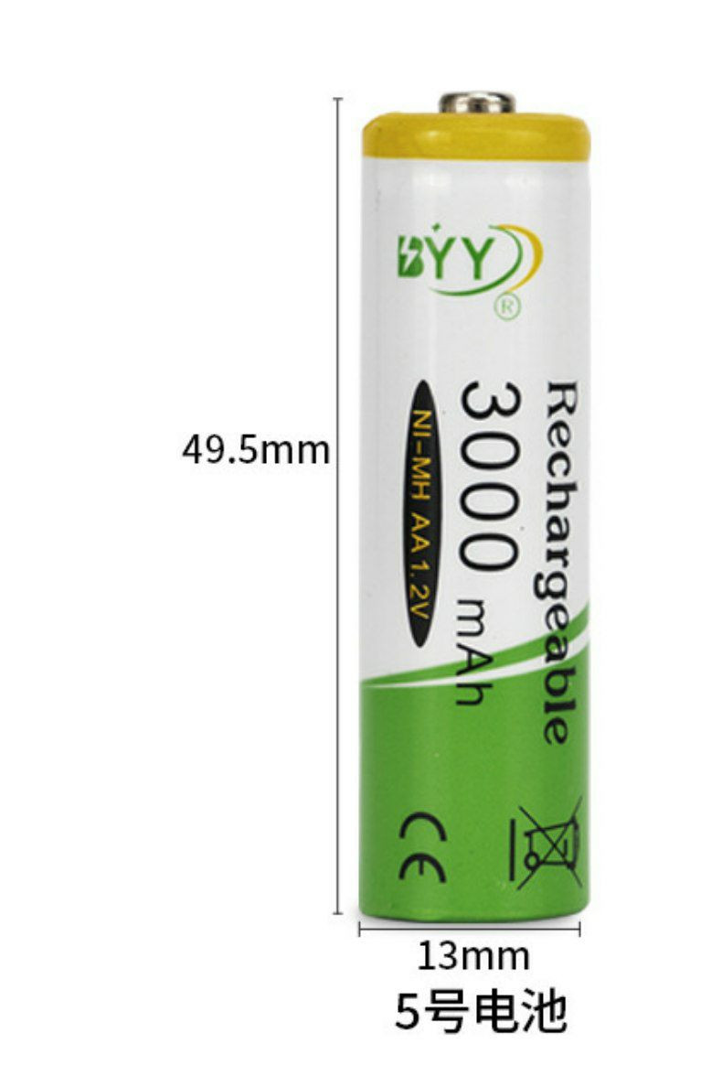 Lot de 4 BYY Piles Ni-MH AA Batteries 1,2V 3000mAh Batterie rechargeable. Cyclable Charge AA Battery Factory Wholesale Electric Toys Nimh