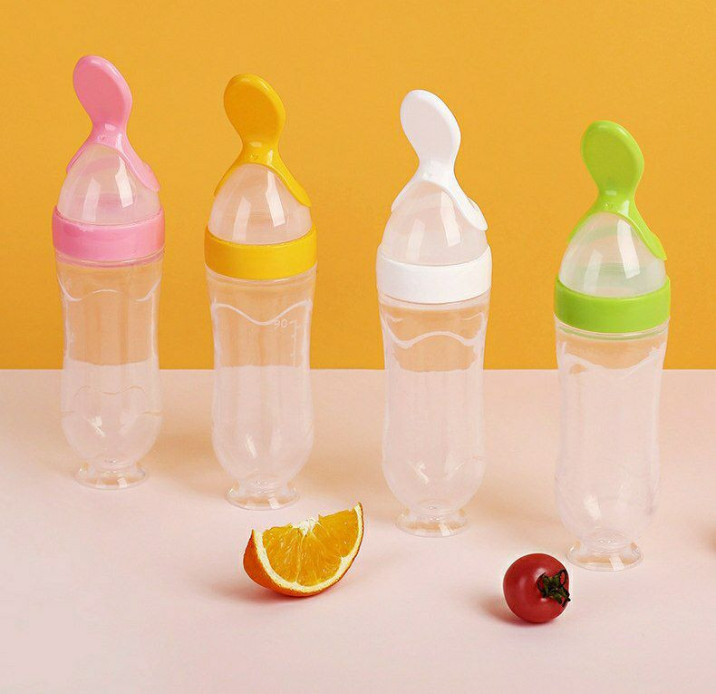 Bouteille d'alimentation en silicone a presser, cuillères a biberon extrudé en silicone alimentaire supplémentaire silicone cuillère douce