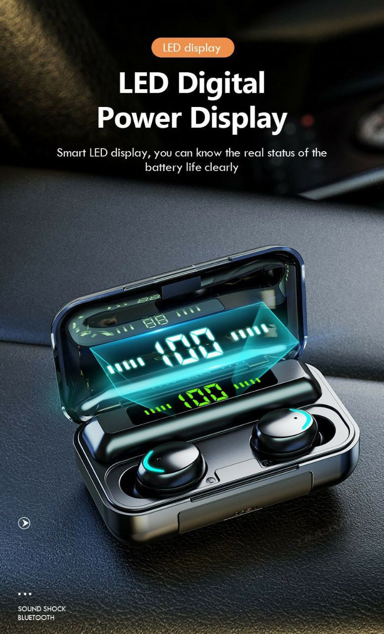 Les casques écouteurs Airpod Bluetooth sans fil populaires F9-5C avec étui de chargement sans fil, grande batterie Double-Earg F9 Affichage numérique Digital Affichage de sports,