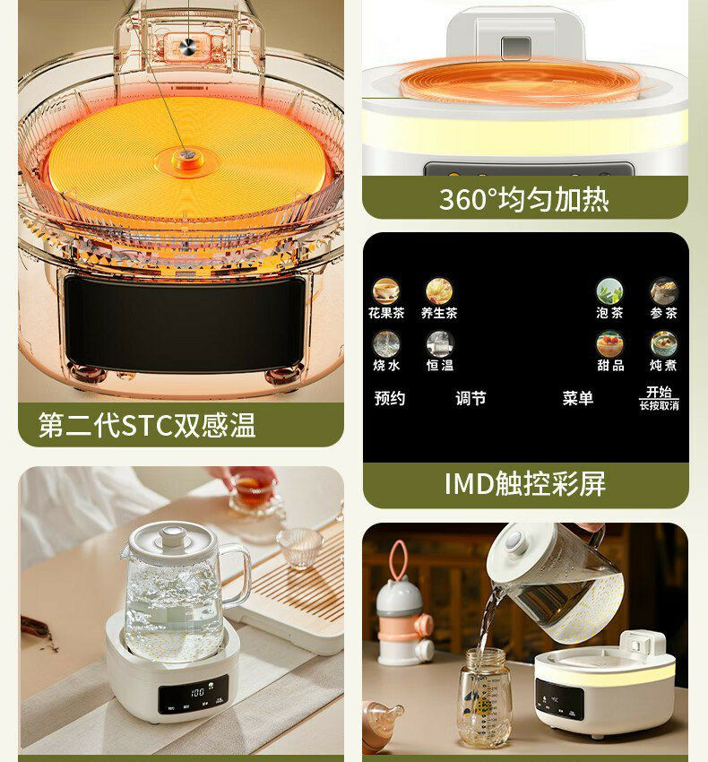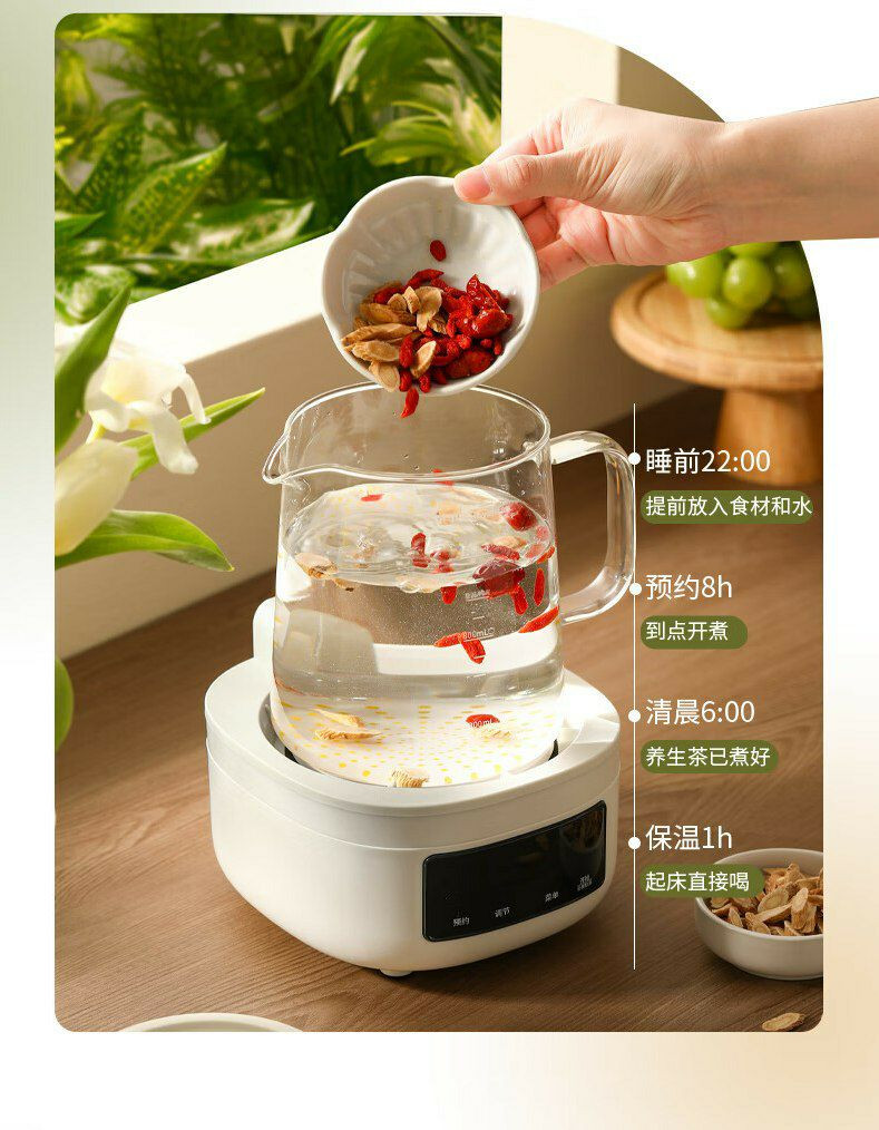 Fonctionnalités : Il s'agit d'une bouilloire de santé en verre avec filtre, dotée de fonctions de cuisson de thé et de maintien au chaud. Elle est également programmable.