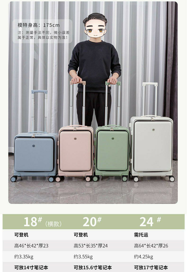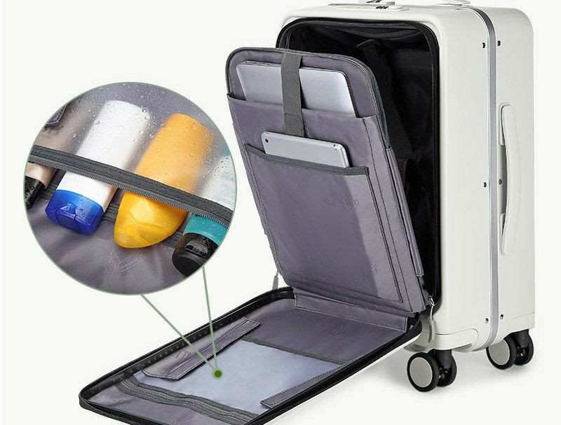 Valise multifonctionnelle, valise trolley rechargeable, avec un compartiment frontal à ouverture rapide. Valise d'embarquement à ouverture frontale