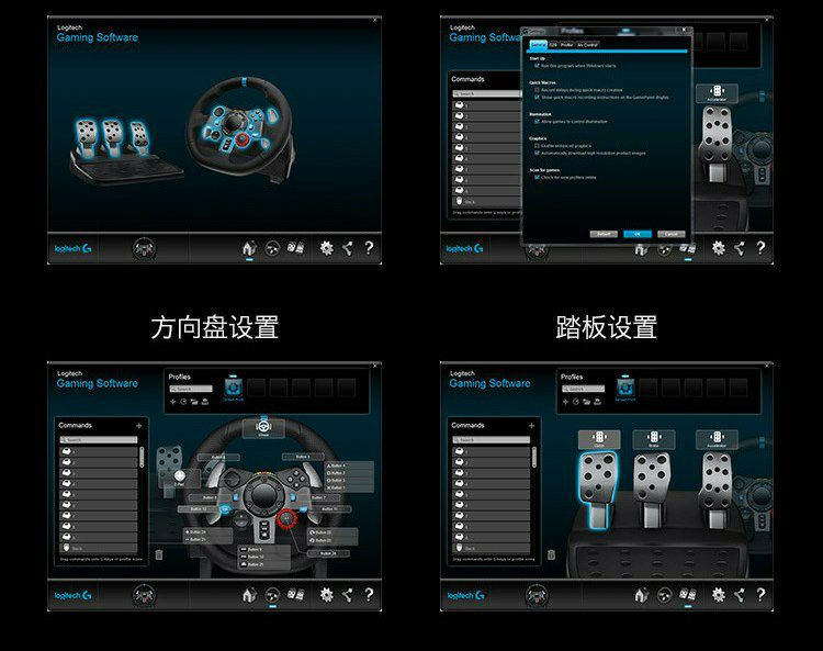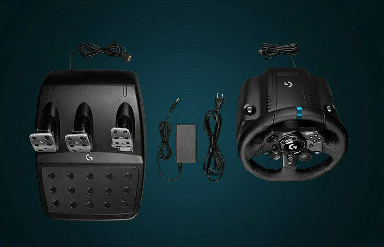 Le pédalier inclus possède trois pédales (accélérateur, frein, embrayage) et une pédale de frein progressive qui simule un système de freinage sensible à la pression.