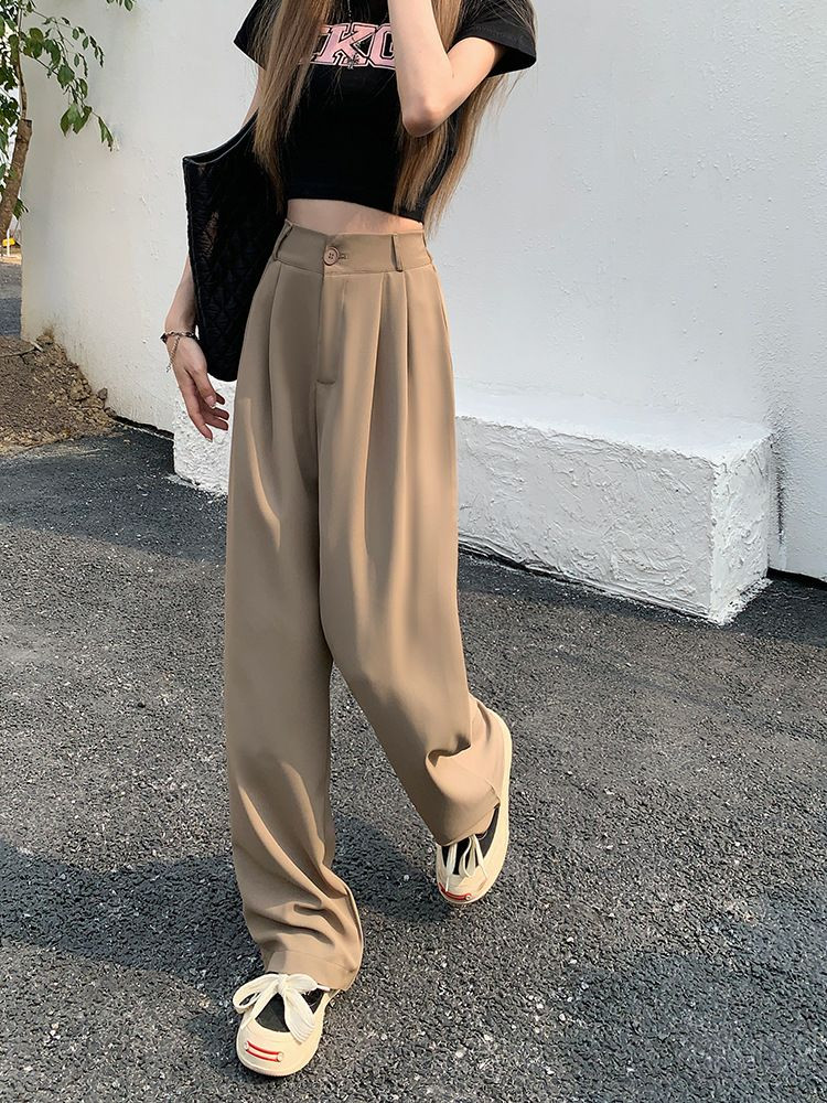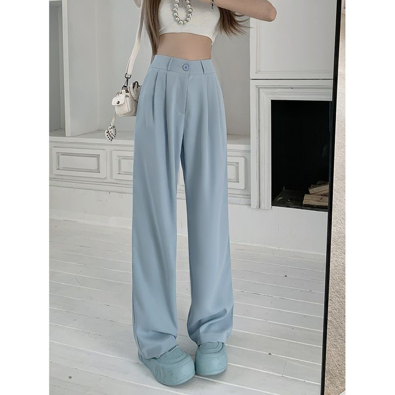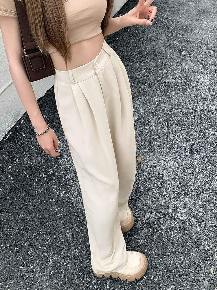 Pantalons élégant de costume avec taille élastique, pantalons décontractés slim, pantalons larges amples d'été, pantalons drapés taille haute