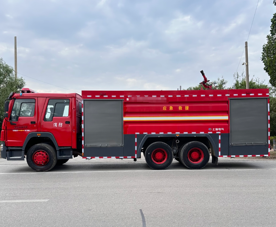 d'une boîte de vitesses rapide à 10 rapports (vitesses haute et basse), d'une direction assistée hydraulique, de freins à air (ABS), de pneus à rayons d'acier 1200/20, de feux de signalisation 24 V conformes aux normes nationales, d'une pompe à incendie Shanghai Graman (débit de 60 l/s) et d'un canon à eau Graman (débit de 60 l/s, portée de 70 m).