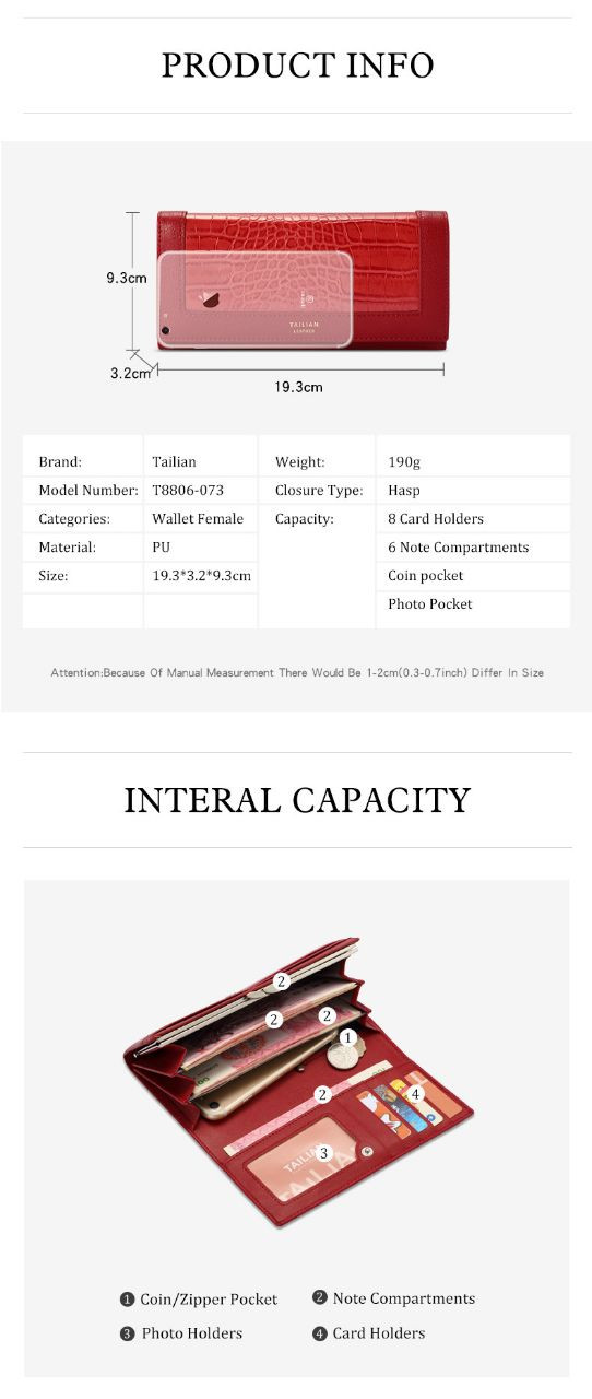 Tailian portefeuille class, tendance, glamour pour dames de style européen et américain pochette porte monnaie à motif crocodile sac à main portefeuille multifonctionnel