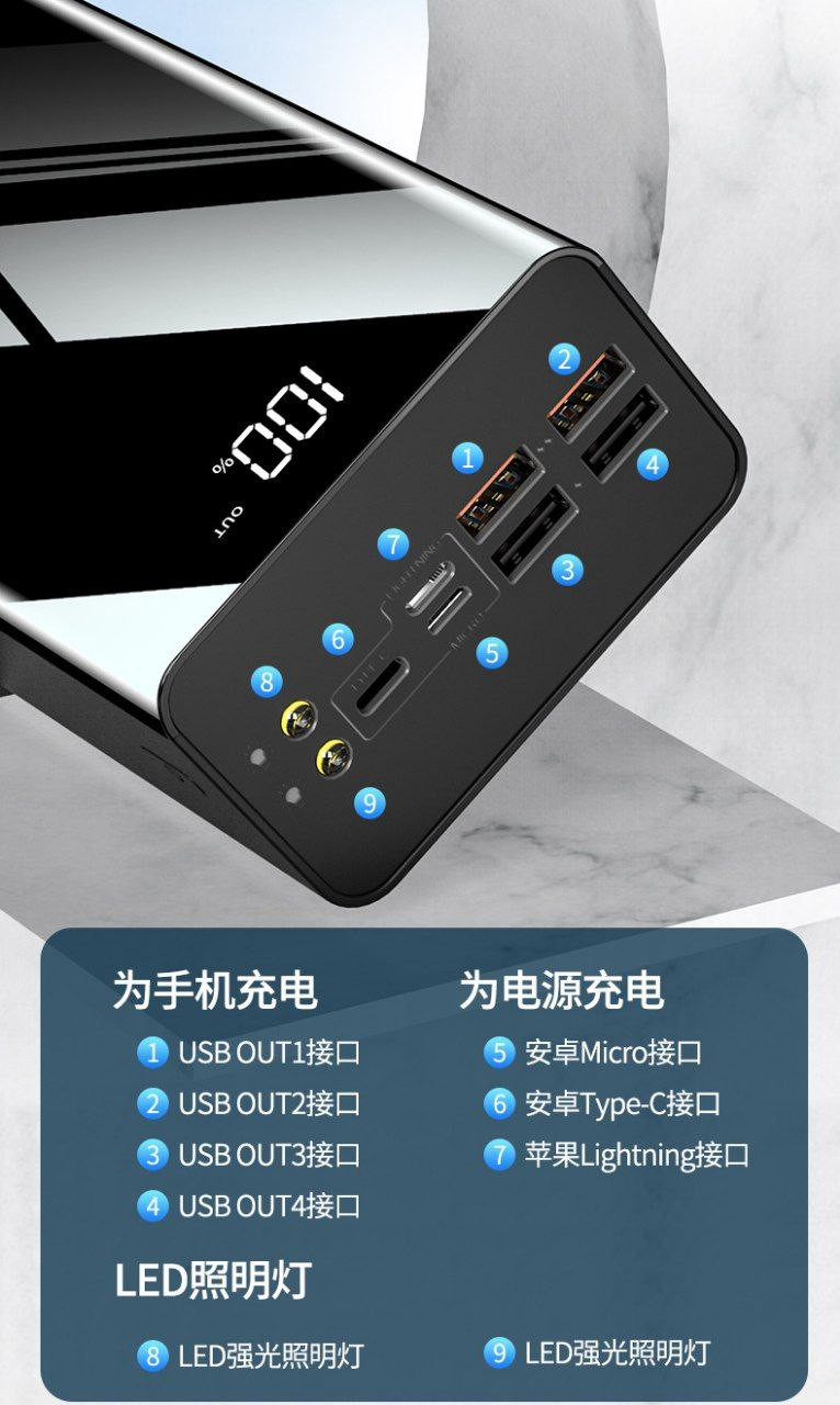 Powerbank Grande capacité de 100000 mA 2A Réunification rapide Mobile Power - resistante et longue duree
