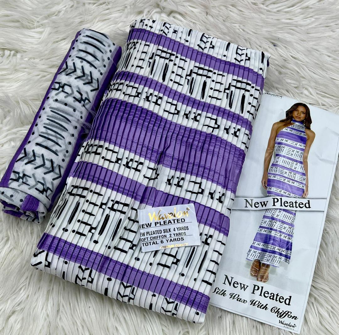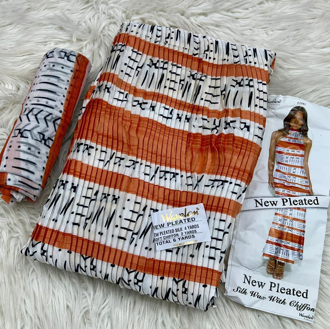 Tissu soie Wavelon plissée 4yards de tissu+2 yards de foulard=6yards